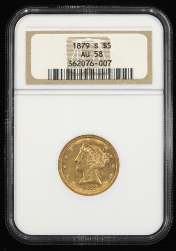 1879-S LIBERTY HEAD GOLD HALF EAGLE $5 NGC AU58 (76007)
