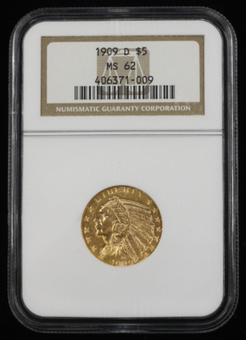 1909-D INDIAN HEAD GOLD HALF EAGLE $5 NGC MS62 (71009)