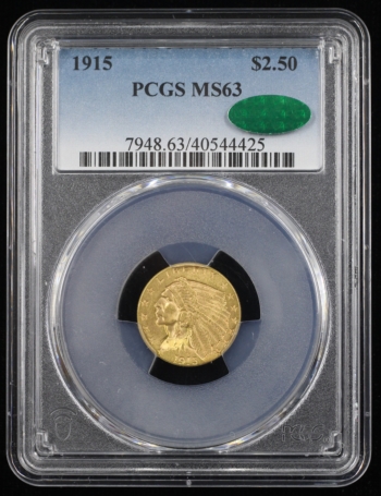1915 INDIAN HEAD GOLD QUARTER EAGLE $2.50 PCGS MS63 *CAC* (44425)