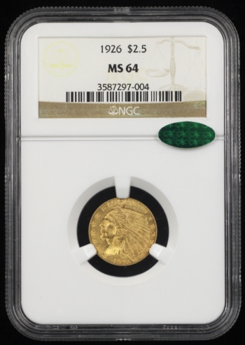 1926 INDIAN HEAD GOLD QUARTER EAGLE $2.50 NGC MS64 *CAC* (97004)