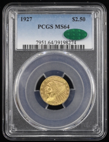 1927 INDIAN HEAD GOLD QUARTER EAGLE $2.50 PCGS MS64 *CAC* (98274)