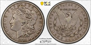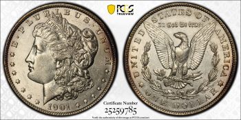1901 MORGAN DOLLAR $1 PCGS MS63 *CAC* (94198)