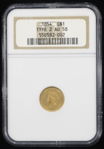 1854 INDIAN PRINCESS GOLD DOLLAR $1 NGC AU58 TYPE 2 (82002)