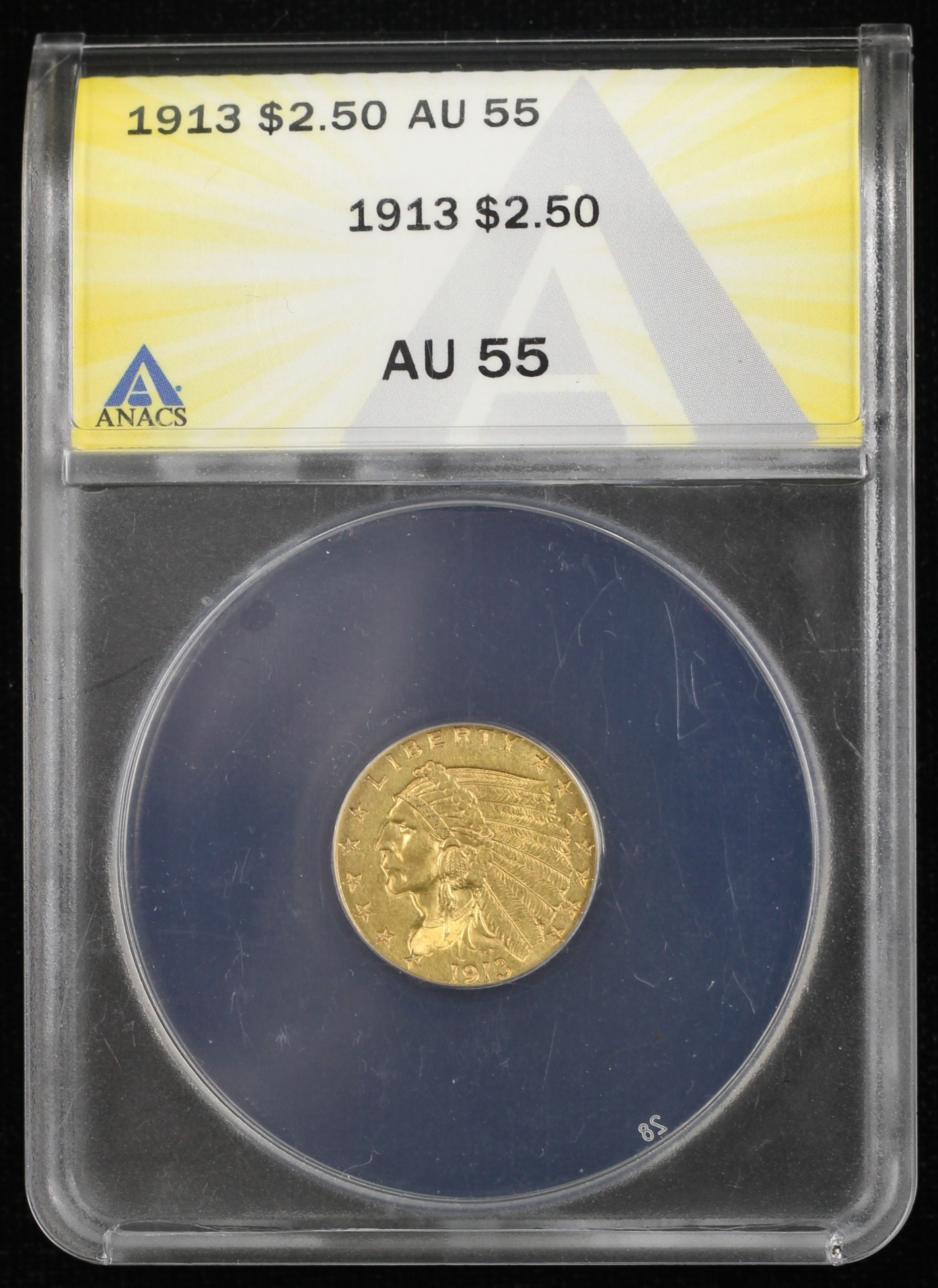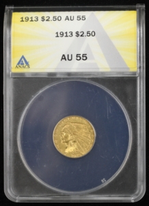 1913 INDIAN HEAD GOLD QUARTER EAGLE $2.50 ANACS AU55 (01984)