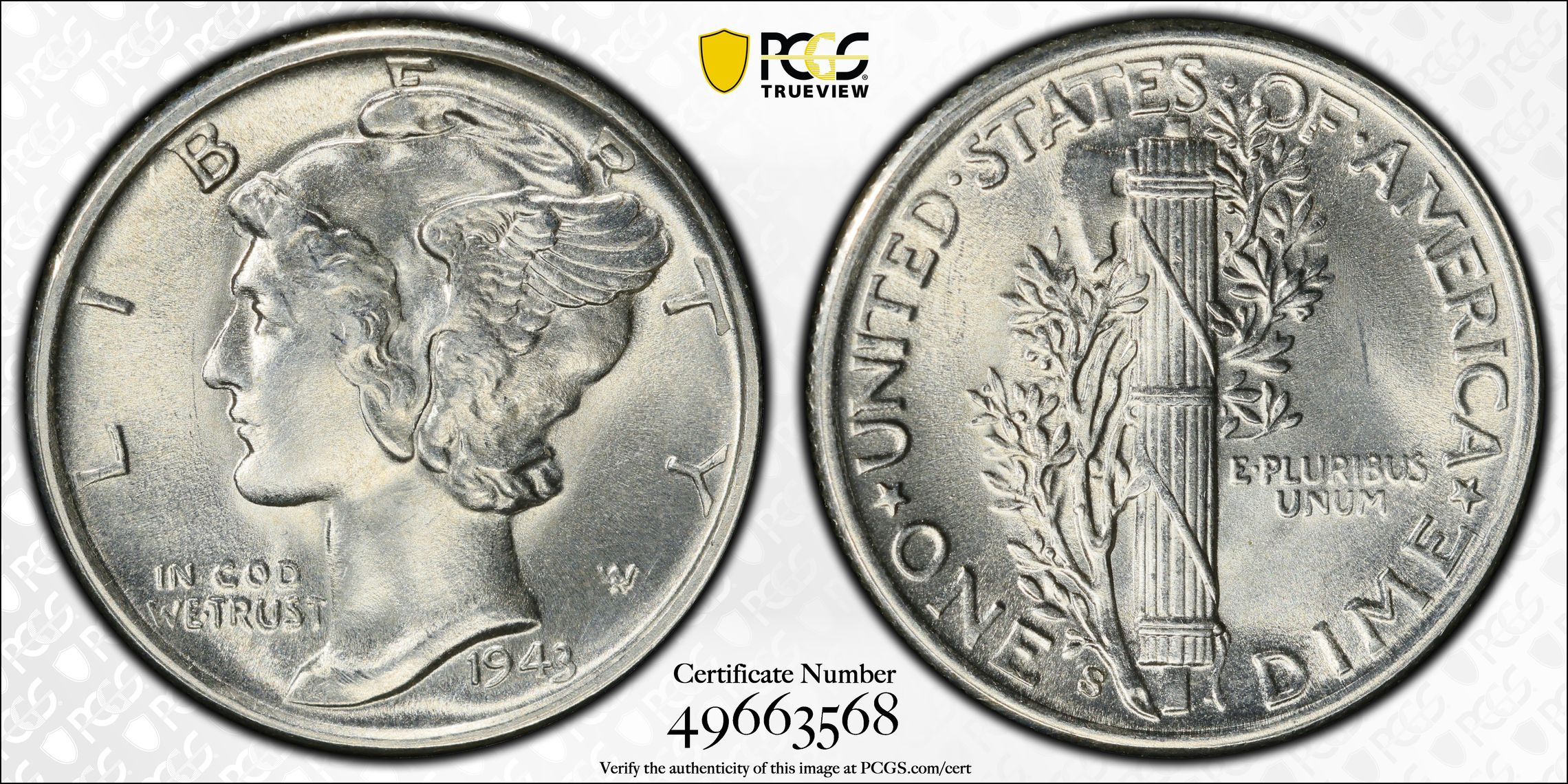 1943-S MERCURY DIME 10C PCGS MS65 (63568)
