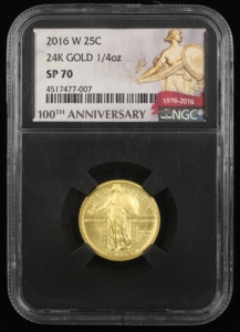 2016-W STANDING LIBERTY QUARTER 25C 100TH ANNIVERSARY 24K GOLD 1/4 OZ NGC SP70